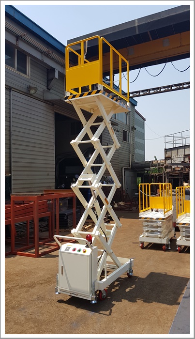 자동차에 사용된 테이블리프트를 고정식 테이블리프트라고 하며 지금 보시는 사진은 이동식 테이블리프트 입니다. 이동식은 다른곳에서도 사용이 가능하기 때문에 많이들 선호 하세요.